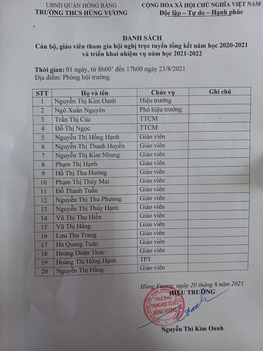 1. Đồng chí Nguyễn Thị Kim Oanh- Ht nhà trường