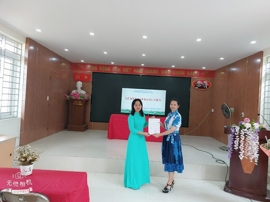Sáng nay thứ 6 ngày 19/8/2022 Chi bộ trường THCS Hùng Vương kết nạp đảng viên quần chúng Nguyễn Thị Thanh Huyền