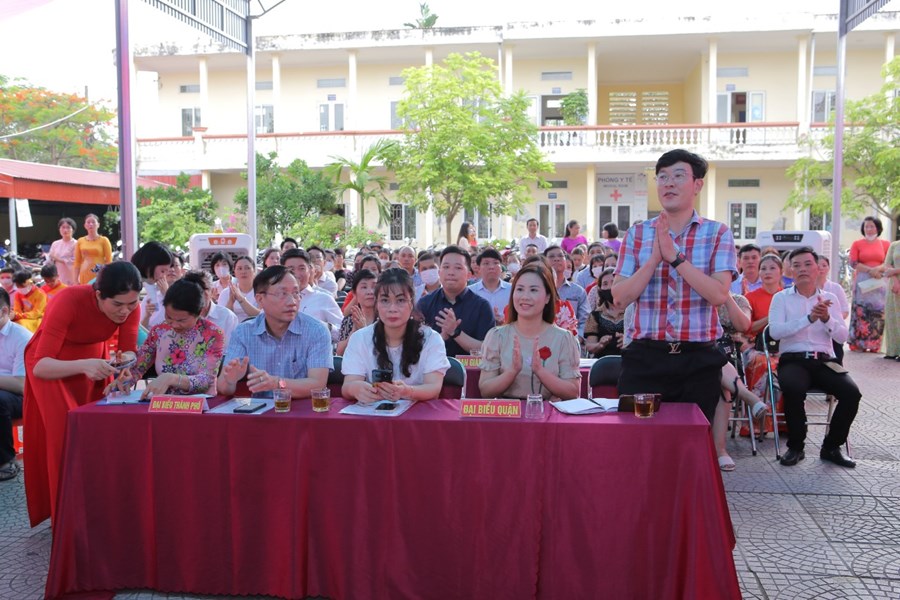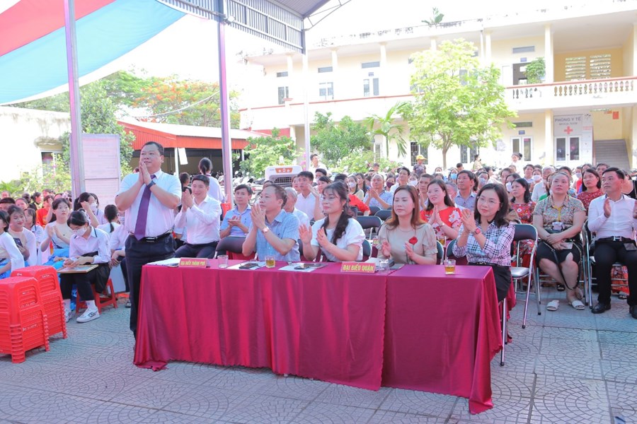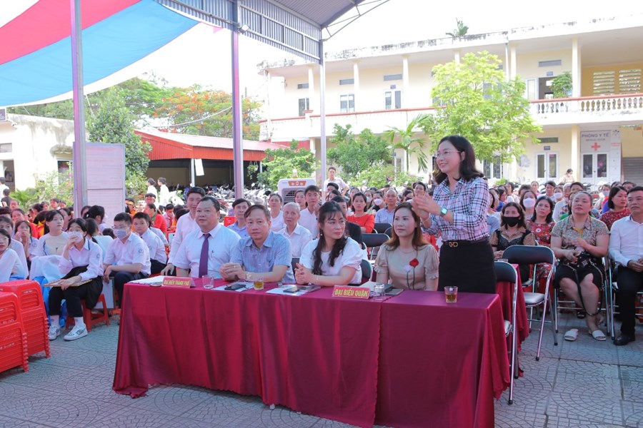 Sau phần Nghi lễ chào cờ và phút sinh hoạt truyền thống là báo cáo tổng kết năm học của nhà giáo Ngô Xuân Nguyên - Phó Hiệu trưởng nhà trường trình bày.