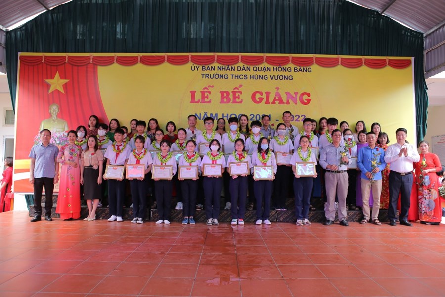Hướng tới kỉ niệm các ngày lễ trọng đại của đất nước và thành phố trong tháng 5, đặc biệt chào mừng Đại hội Đoàn các cấp, chiều thứ 3 (24/5/2022), trường THCS Hùng Vương đã tổ chức thành công “Lễ tổng kết - Biểu dương khen thưởng giáo viên giỏi, học sinh giỏi - Liên hoan cháu ngoan Bác Hồ - Năm học 2021-2022”