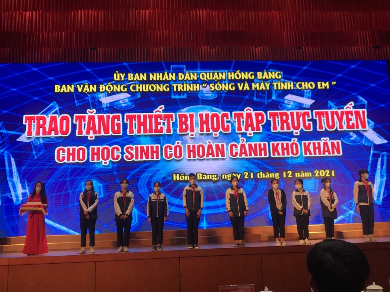Ngày 21 tháng 12 năm 2021 UBND Quận Hồng Bàng trao tặng thiết bị học tập cho học sinh có hoàn cảnh khó khăn . Chủ tịch UBND Quận trao tặng cho từng học sinh của các trường trong quận Hồng Bàng. Em Vũ Trúc Hoàng Ngân- lớp 8A1 tuy hoàn cảnh khó khăn nhưng em luôn vươn lên học giỏi nhiều năm liền.
