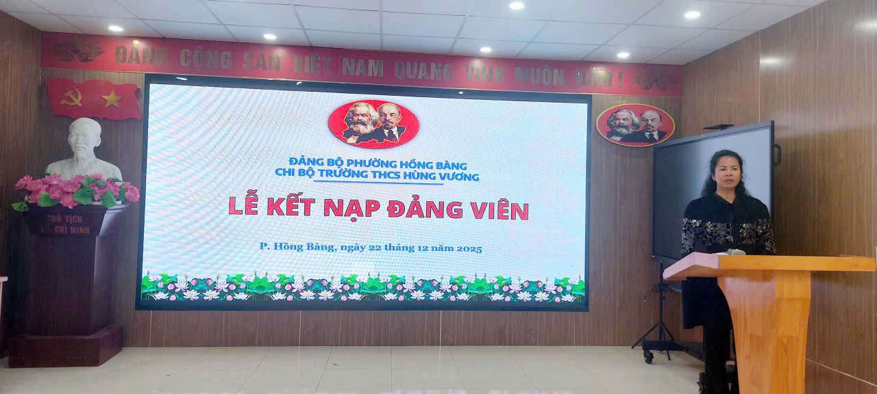 Sáng ngày 22/12/2025 Thực hiện công tác xây dựng Đảng và phát triển đảng viên mới, Chi bộ trường THCS Hùng Vương đã long trọng tổ chức Lễ kết nạp Đảng viên cho quần chúng ưu tú đồng chí Nguyễn Thị Kim Nhung và đồng chí Nguyễn Thị Thùy LInh vào Đảng Cộng sản Việt Nam.