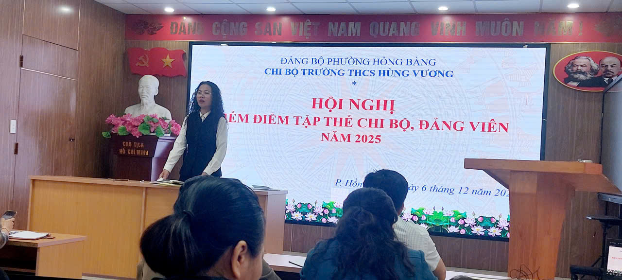 Sáng 6/12/2025, Hội nghị kiểm điểm Đảng viên cuối năm tại trường THCS Hùng Vương được tổ chức trong không khí nghiêm túc, dân chủ và trách nhiệm. Đây là hoạt động thường niên nhằm đánh giá toàn diện kết quả thực hiện nhiệm vụ của tập thể chi bộ và của từng đảng viên trong năm học vừa qua; đồng thời phát huy vai trò tiên phong, gương mẫu của mỗi đảng viên trong mọi lĩnh vực công tác.